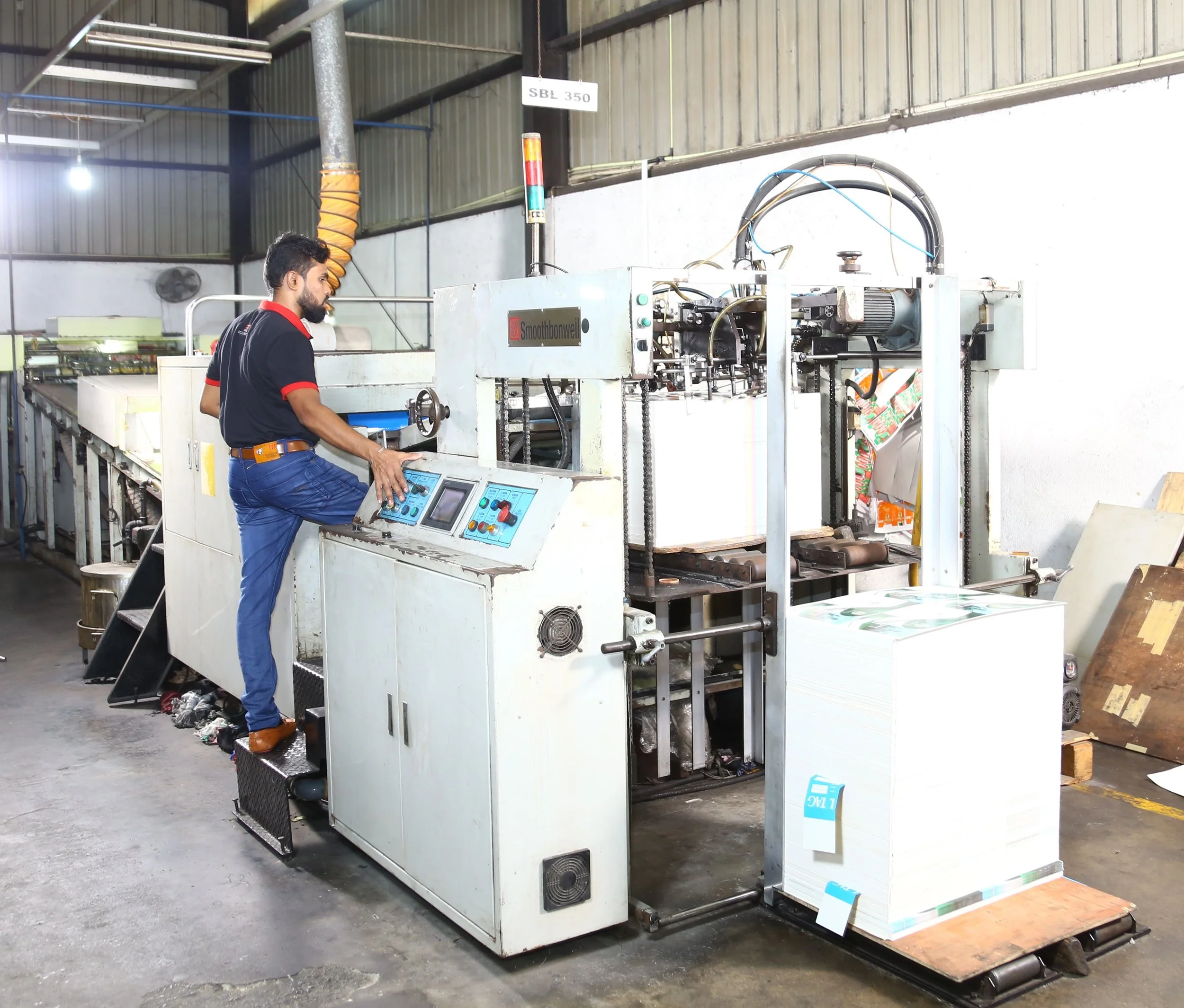 In our UV varnishing process, a coating is applied to the print surface which is then cured using UV lamps to create a subtle sheen that brings the designs to life. It's a simple yet effective way to add a glossy finish that not only boosts visual appeal but also provides a protective layer which ensures your materials maintain their quality over time. Whether it's FMCG packaging material, exercise book covers, POS (point-of-sales) material, UV Varnishing will give the finished print a more vibrant and polished look.